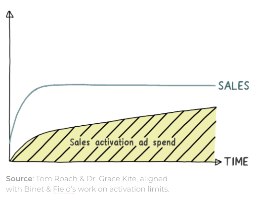 Pure activation channels like search, social media, and performance marketing run out of new people to reach. As budgets grow, frequency goes up, but reach doesn't. You're paying to reach the same people, over and over again.