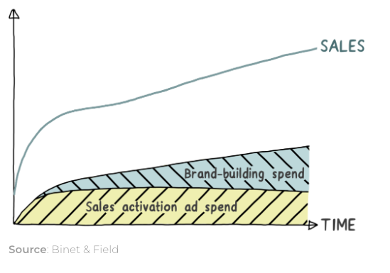 Binet and Field suggest a roughly 50/50 split between activation and brand building delivers the strongest long-term results. For most digital-first brands, that means tilting the balance toward brand building. TV is the most natural place to start.