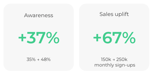 Monzo had grown mostly through referrals before their first TV campaign. Before TV, they averaged around 150,000 monthly sign-ups. In their strongest month after launching, they hit 250,000 – a 67% jump in monthly sign-ups.